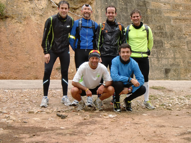 Aquí estic amb uns companys de l'equip "quin calvari" que vam trobar per la via verda i que preparen la marató de Barcelona. Llàstima que a la foto estava una mica adormit.