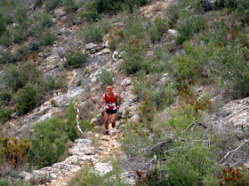 Tere, que avui debutava amb cursa ( atràs ha deixat les marxes ) amb l'equip de la joca club alpi de Roquetes ha fet una cursa excel.lent, seguint els consells ha fet una cursa progressiva acabant 6ª de la general de dones i 3ª senior, fantastic! qui debut!